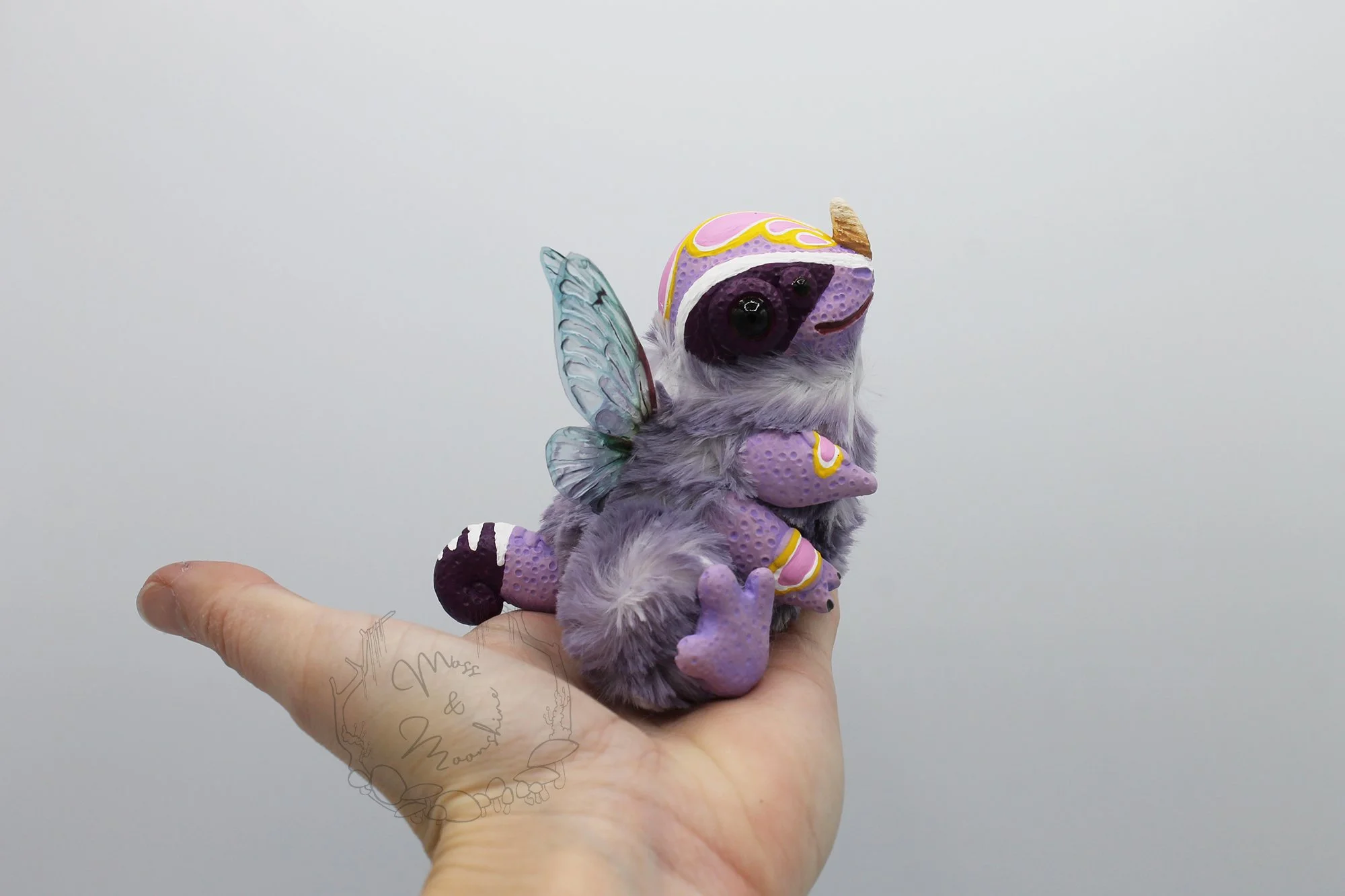Hatchlings are made from a combination of resin cast parts and high quality fake fur. Their head, feet, and tail are resin casts from original sculptures and hand painted with acrylics. Their plush bodies are stuffed with a mixture of polyfoam and beans to give them a realistic weight. Hatchlings are approximately 3 1/2 inches tall by 3 inches wide. Due to their handmade nature, please allow for slight variations between each hatchling as they all turn out to be unique individuals!